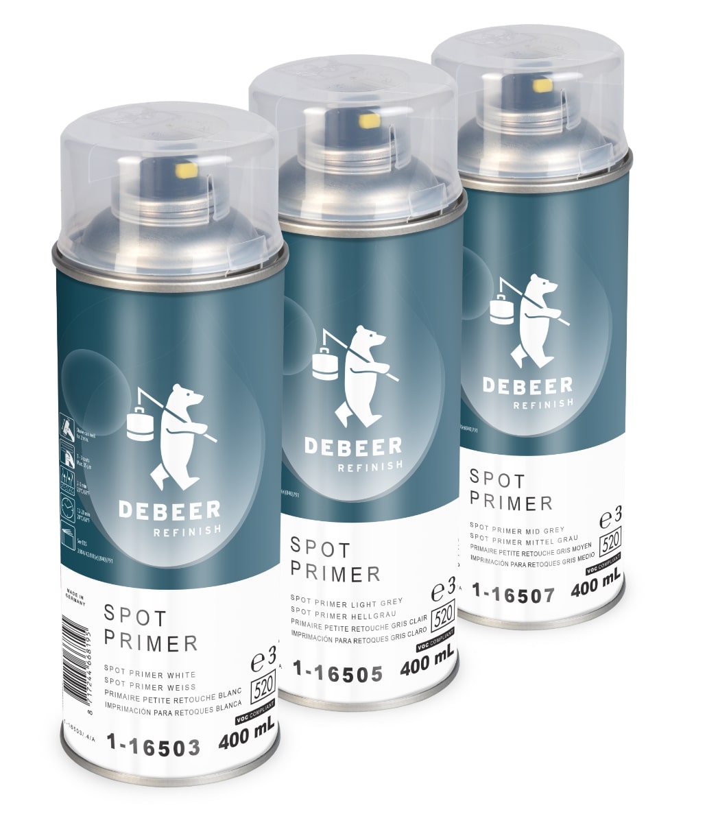 Effortless spot repair primers in aerosol cans for quick and easy application.